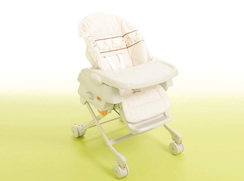 水平スウィングで赤ちゃんの気持ちもゆったり。ローベッドのときもハイチェアのときも方向転換は自由自在。いつもお母さんと一緒です。